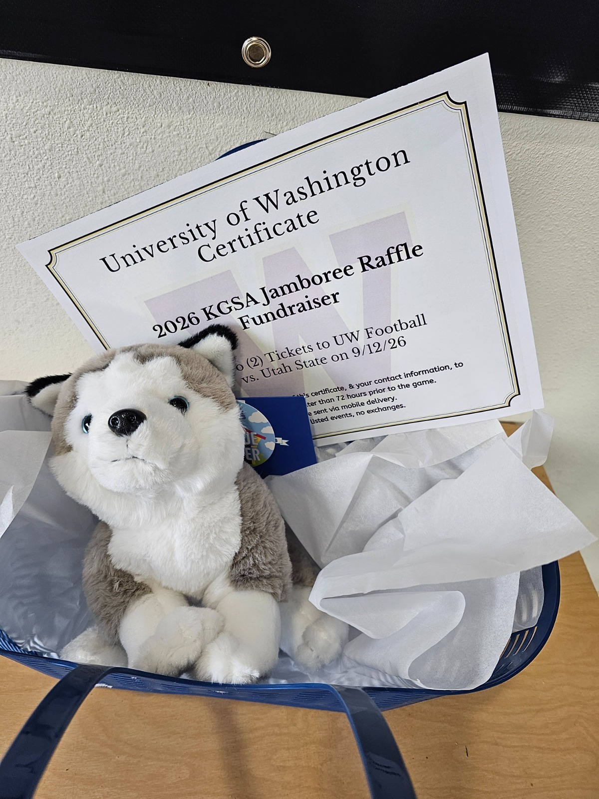 #4 WA HUSKIES GAME DAY - 2 Tickets to WA vs Utah Footbal 9/12/26, Stuffed Husky dog (Value $214.00)