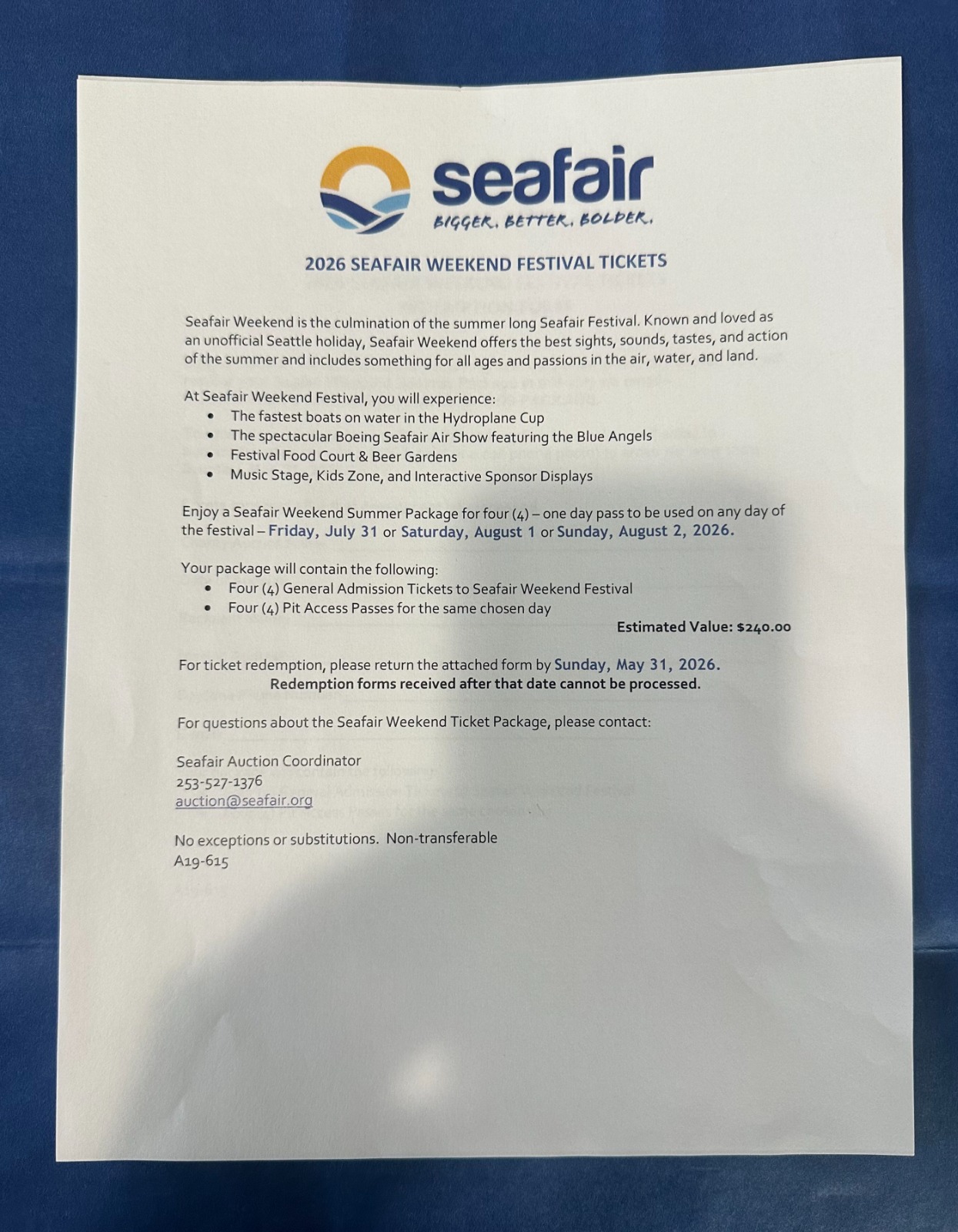#11 SEAFAIR WEEKEND - Weekend Festival General Admission for 4, Hydroplane Pit pass vouchers for same chosen day as GA tickets (Value $240.00)